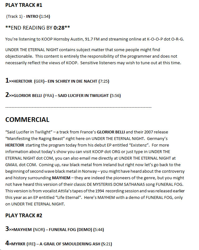Heretoir - .Existenz. 2009 - 02 - Ein Schrey in die Nacht (France) Glorior Belli - Manifesting the Raging Beast 2007 - 06 - Said Lucifer in Twilight (France) Mayhem - Life Eternal 2008 - 04 - Funeral Fog (Norway) Myrkr - Black Illumination 2009 - 01 - A Grail of Smouldering Ash (Ireland)